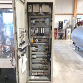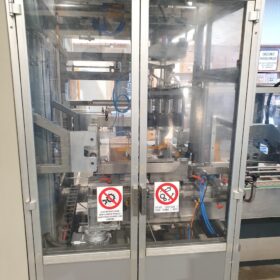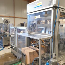 Encartonneuse automatique construite par Italproject, modèle MIF 39/N, installée en 2005. L’unité est conçue pour gérer une cadence de 6,5 cartons par minute, soit un débit maximal de 390 cartons par heure. La machine est un système trois-en-un, intégrant les fonctions de formeuse de carton, encartonneuse et fermeuse de cartons.