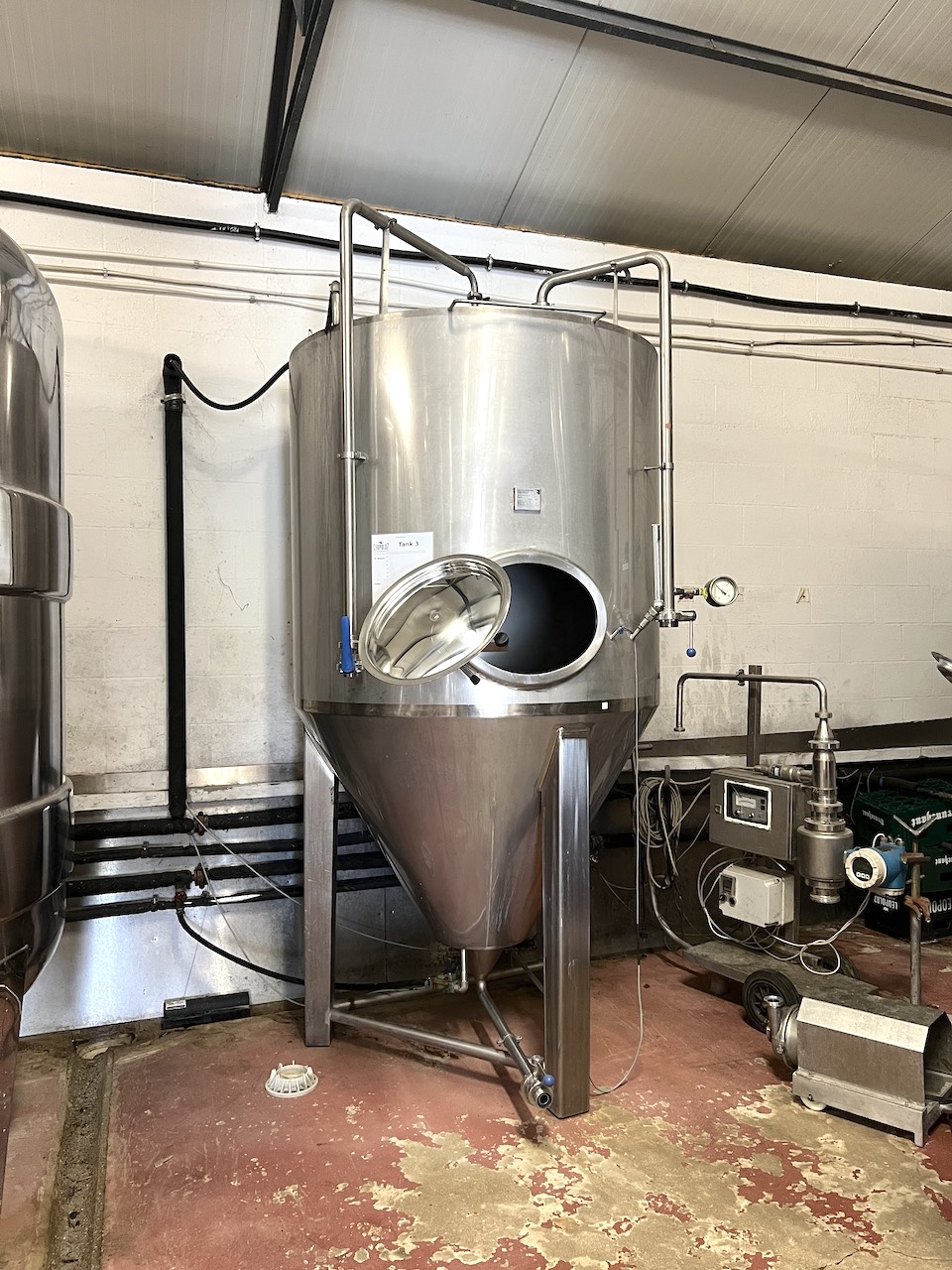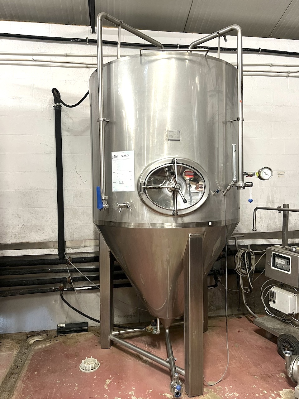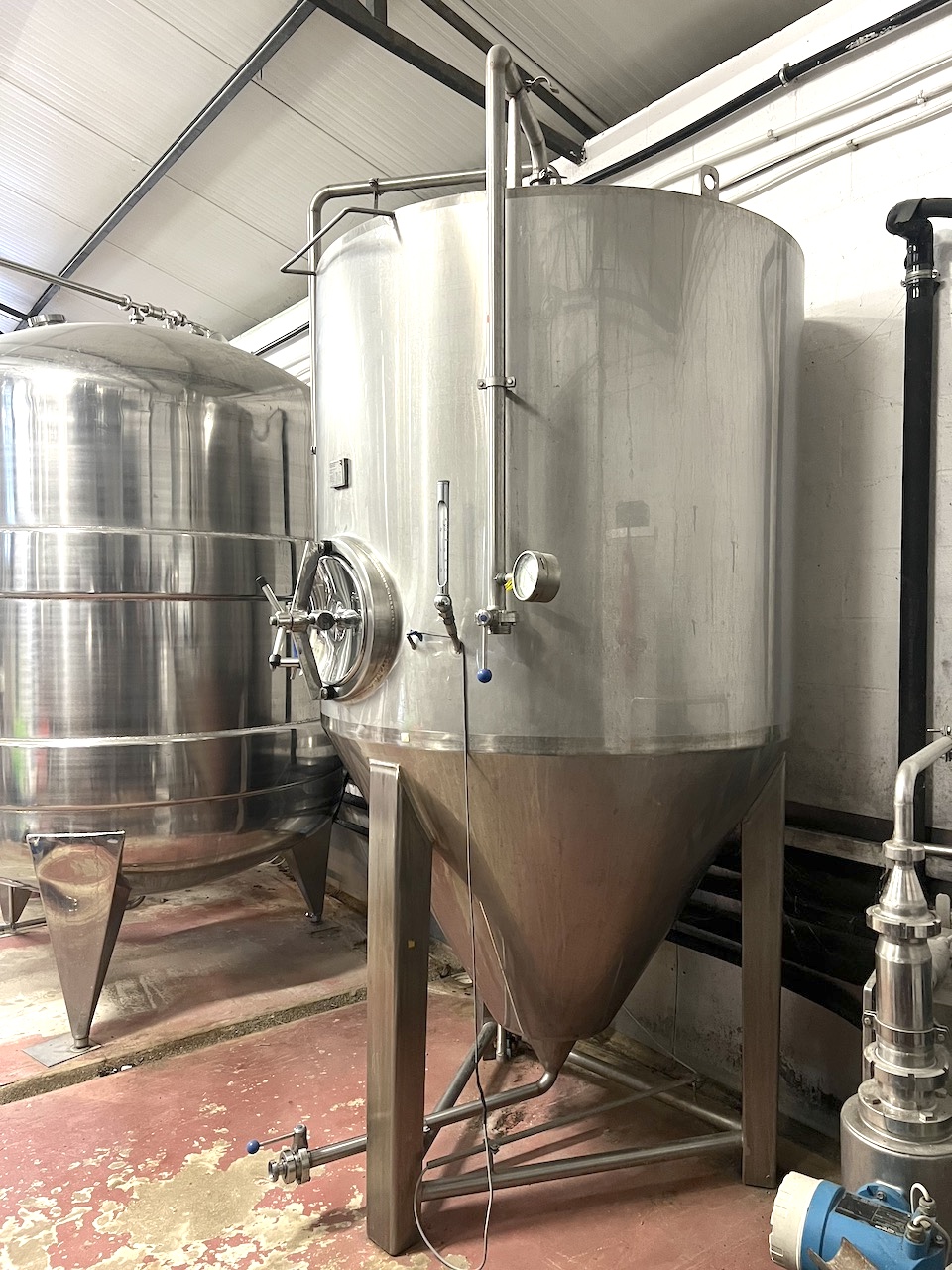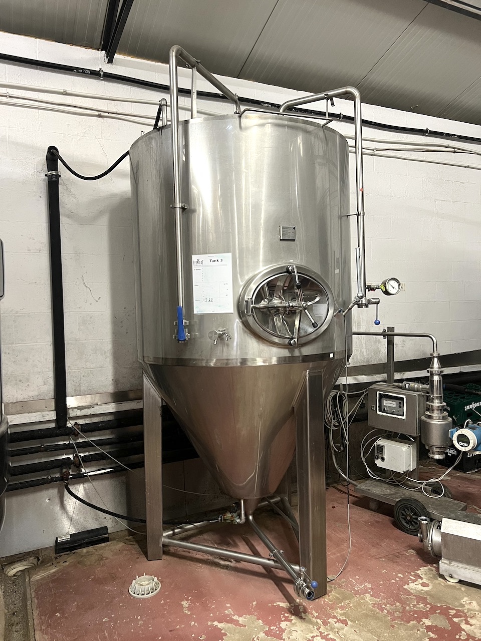 Fermenteur inox 15 hL (18 hL brut) de 2022, avec refroidissement glycol, porte trou d’homme latérale, robinet d’échantillon, boule de lavage et bondonneur. Pression de service 0,99 bar.