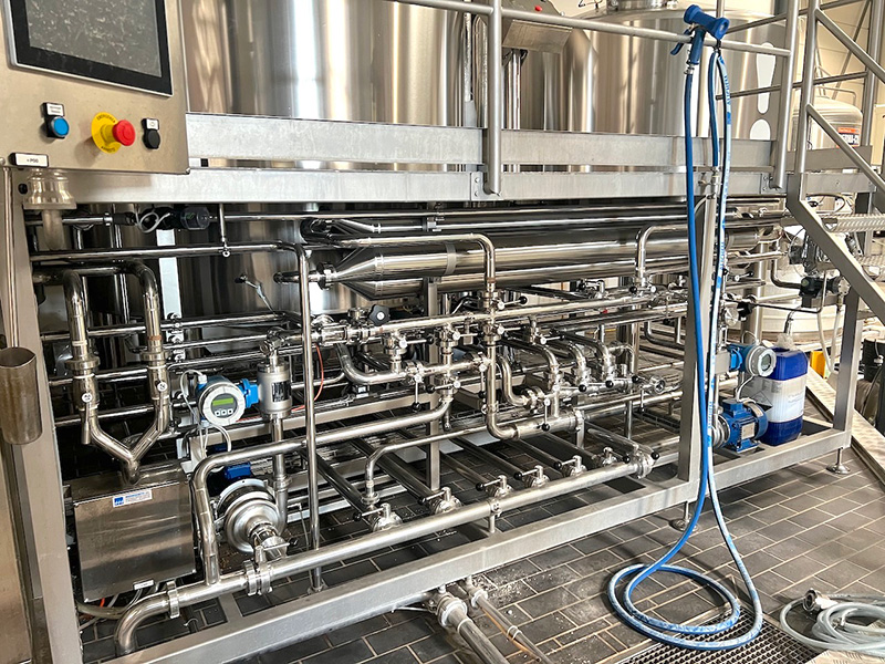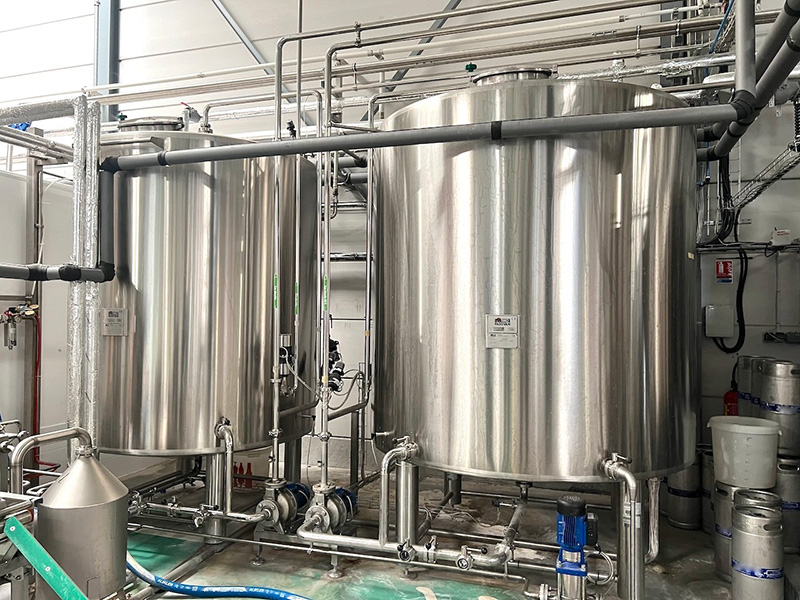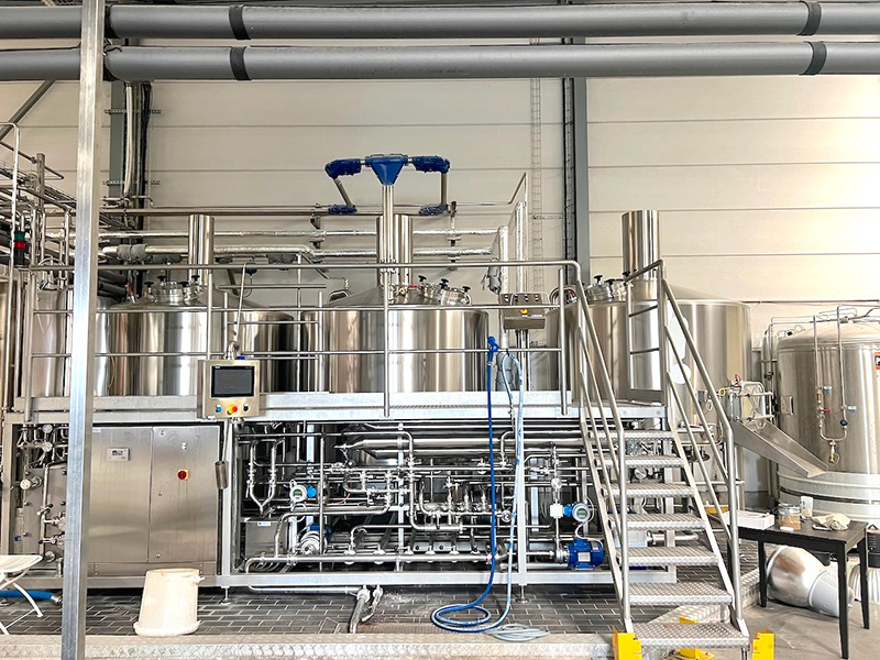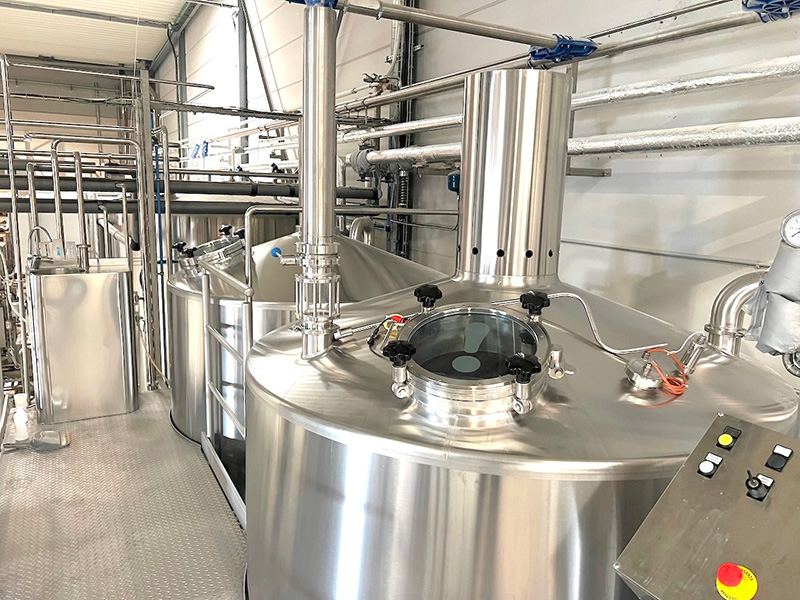 Salle de brassage complète TMCI PADOVAN (type Flexbrau) d’une capacité de 20 hl par brassin, permettant de brasser des bières jusqu’à 22° Plato (charge de malt max. 600 kg). L’installation inclu :